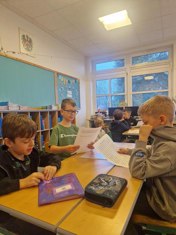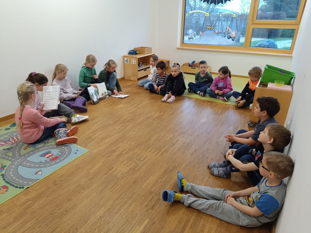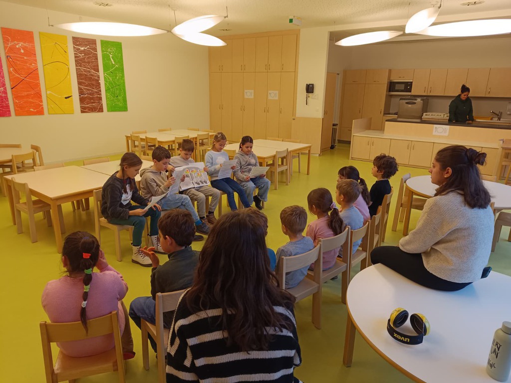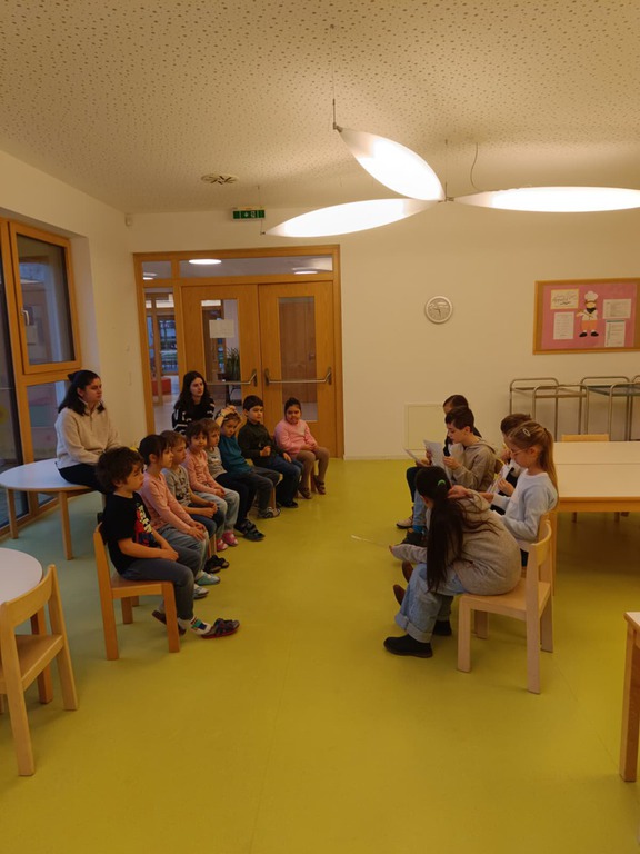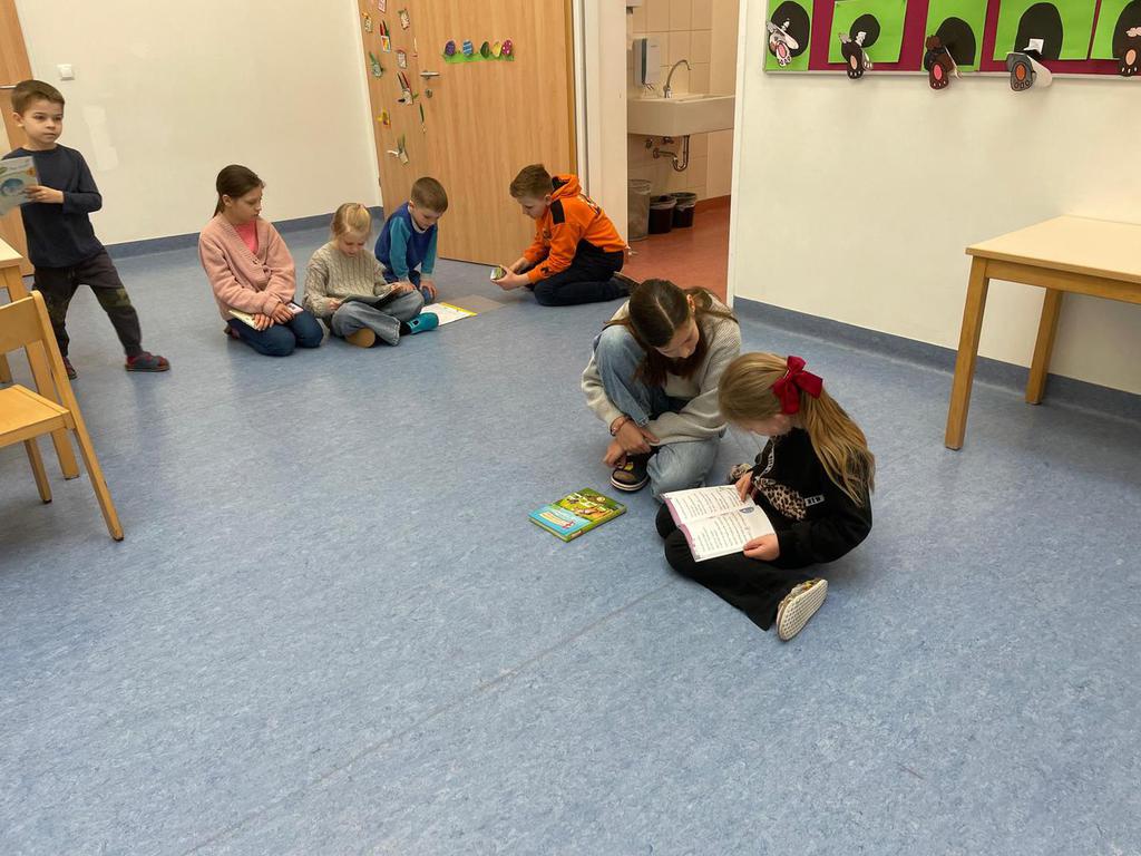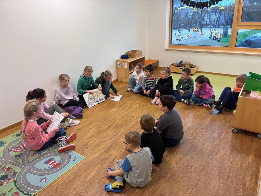 Ein weiteres besonderes Erlebnis war der Besuch der dritten Klassen im Kindergarten. Dort lasen die Schülerinnen und Schüler den Vorschulkindern Geschichten vor und