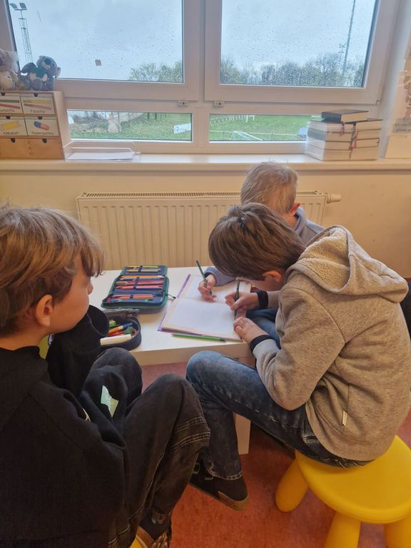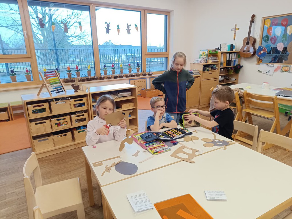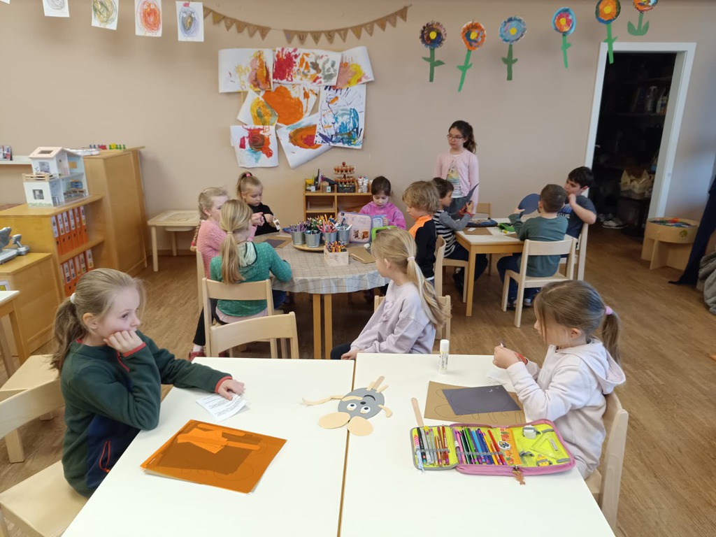 gestalteten anschließend passend zu den Büchern gemeinsame Bastelarbeiten. Diese Begegnung bereitete allen große Freude und stärkte die Verbindung zwischen Schule und Kindergarten.