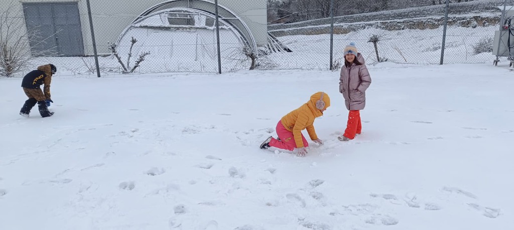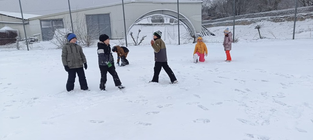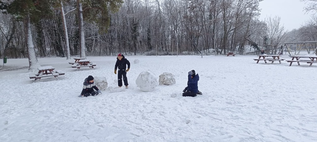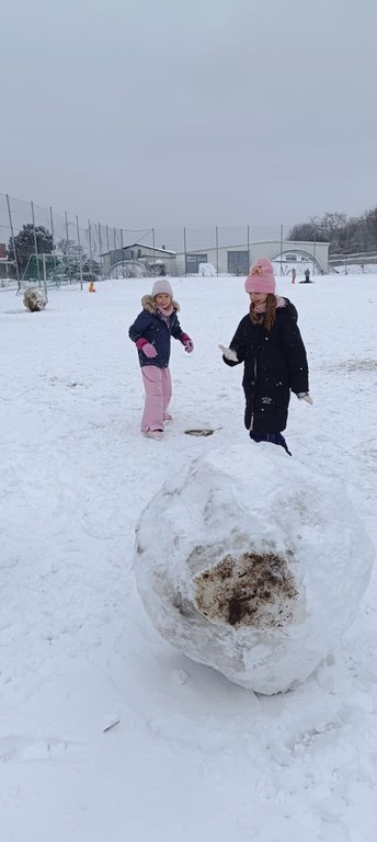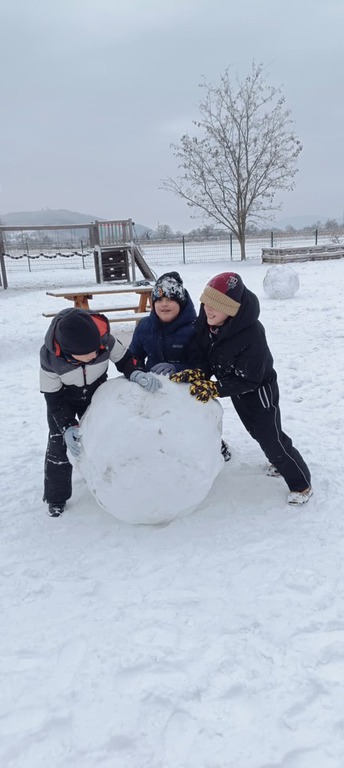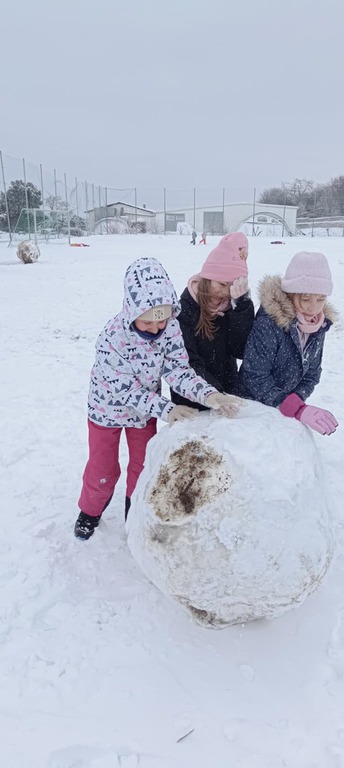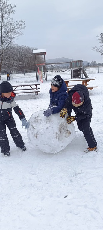 Die 3a Klasse nutzte den verschneiten Tag und verbrachte eine lustige Stunde im Schnee voller Spaß und Bewegung. Gemeinsam bauten die Kinder Schneemänner, lieferten sich lustige